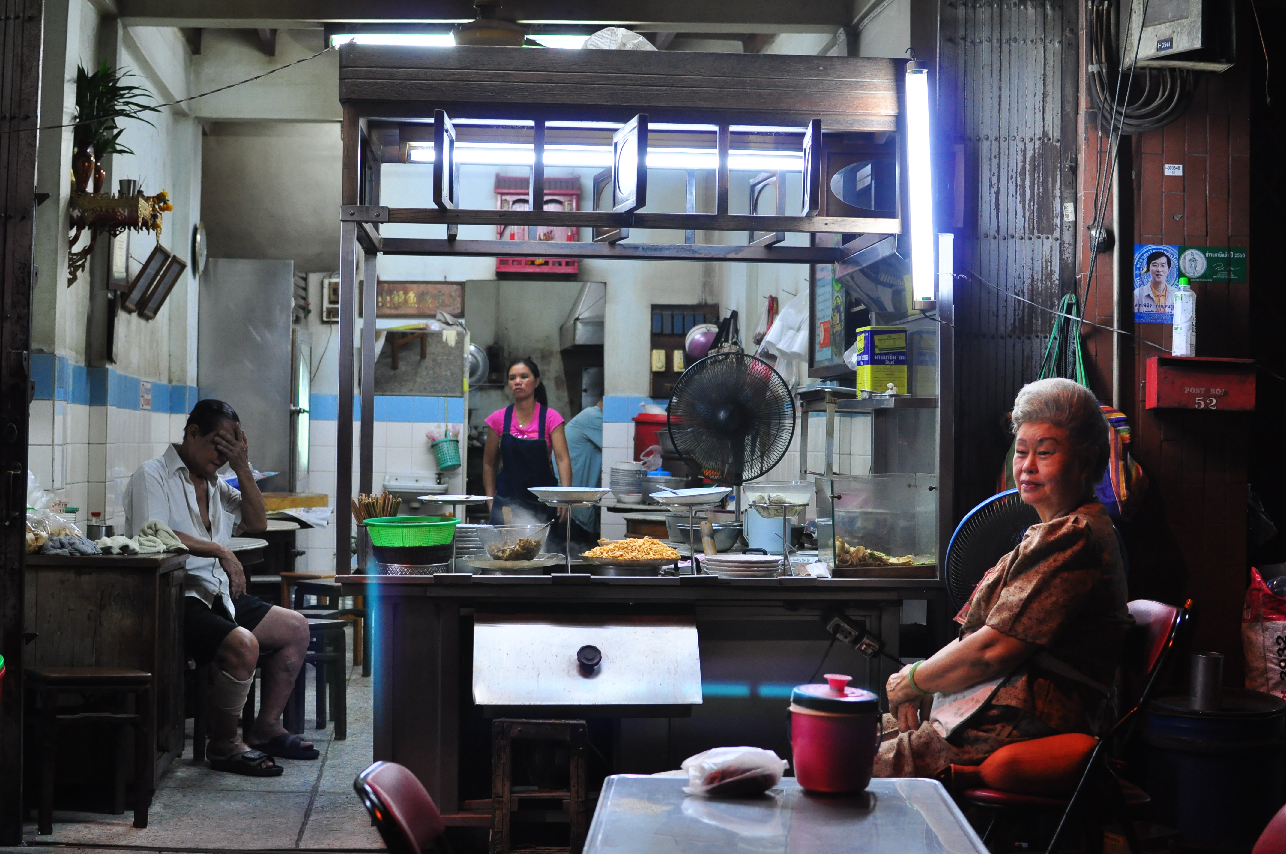 The rest comes via the–shall we say, homey–atmosphere of the shop itself, an alleyside hole-in-the-wall manned by an elderly Chinese man and his formidable wife. Entertainment comes in the form of rodent-sized cockroaches that tickle your toes as you eat; the squeamish need only complain and the waitress will be only too happy to shoo them away for you, at no additional cost. Enjoy.