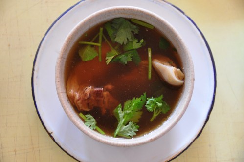 While we were there, the duck on rice (30-40 baht) was certainly a popular dish, eaten with gusto by the octagenarians who occupied the neighboring table. It was here that we learned how to express our appreciation of Chinese food: with much clacking of chopsticks and a cacophony of slurping (the art of slurping is similarly practiced in Japan, but I have never learned how to do it without getting broth in my eye). So in our way, we were being China Rude, something we hope to rectify the next time we wander over to that part of town.