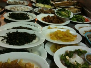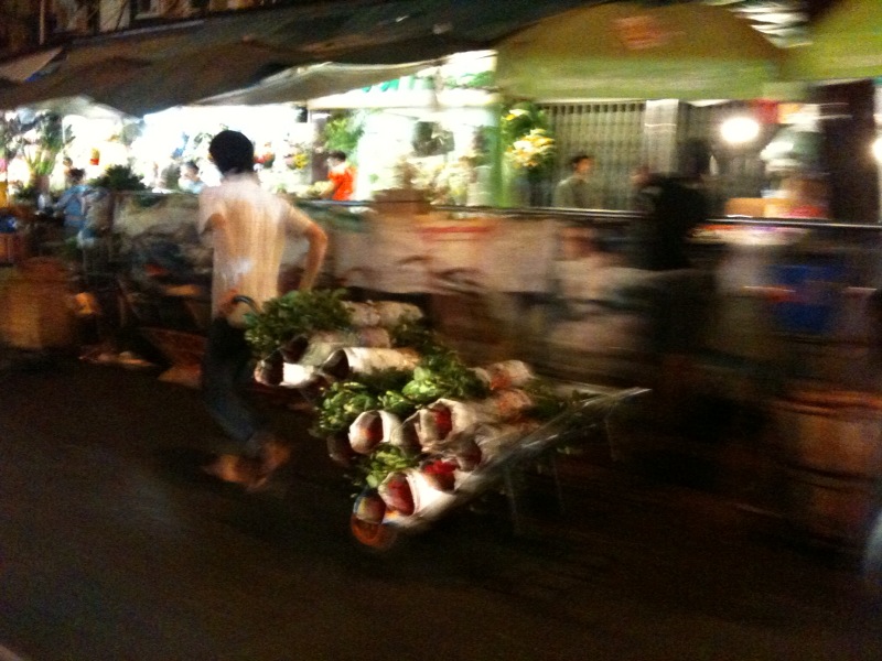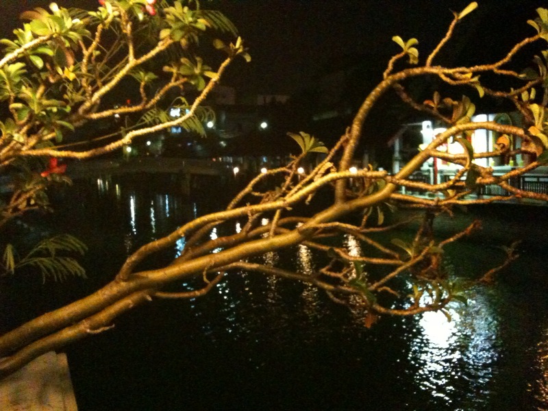 But the best part of Bowon, just like what sets the Old City apart from the rest of Bangkok, are the unexpected touches: solicitous, friendly service and a surprisingly beautiful canal-side view in back … a reprieve from the chaotic clamor of Banglamphu at nighttime. Stumbling across this view after dinner, we enjoyed a quiet moment in the breeze next to a dozing old man in a lawn chair listening to an iPod. The best part of Bangkok, compressed into a few seconds.
