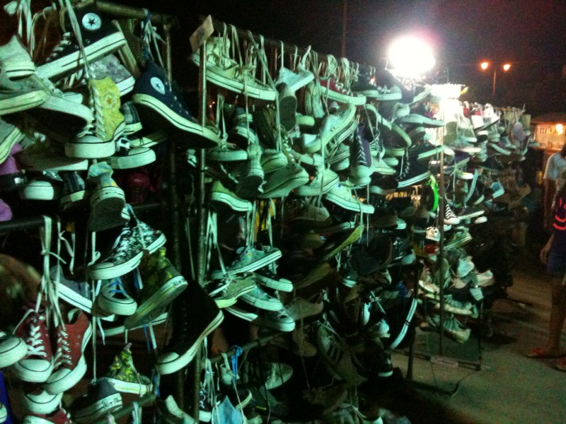 The “Cocktail” bartender-type flinging coffee mugs into the air instead of bottles of rum might be the first indication that this isn’t any old kind of flea market. Then comes the merchandise on display: at first row upon row of hubcaps and unidentifiable car equipment (I know, I’m such a girl), gently segueing into food stalls hawking air-dried beef or chicken buried in cumin rice, rack upon rack of tiny vintage dresses, and tight-fitting boy shirts with the sleeves rolled up.