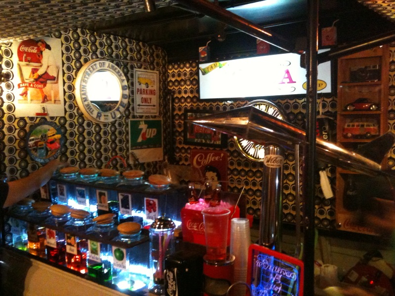But a few favorites stood out: first, a tiny “pub” run out of the back of a wheezy Daihatsu, serving nothing but different types of home-made soda: lichee, green apple, grape, blueberry. I ordered a glass of strawberry and managed my way through most of this super-sweet concoction, hypnotized by the bright colors and whirling lights.