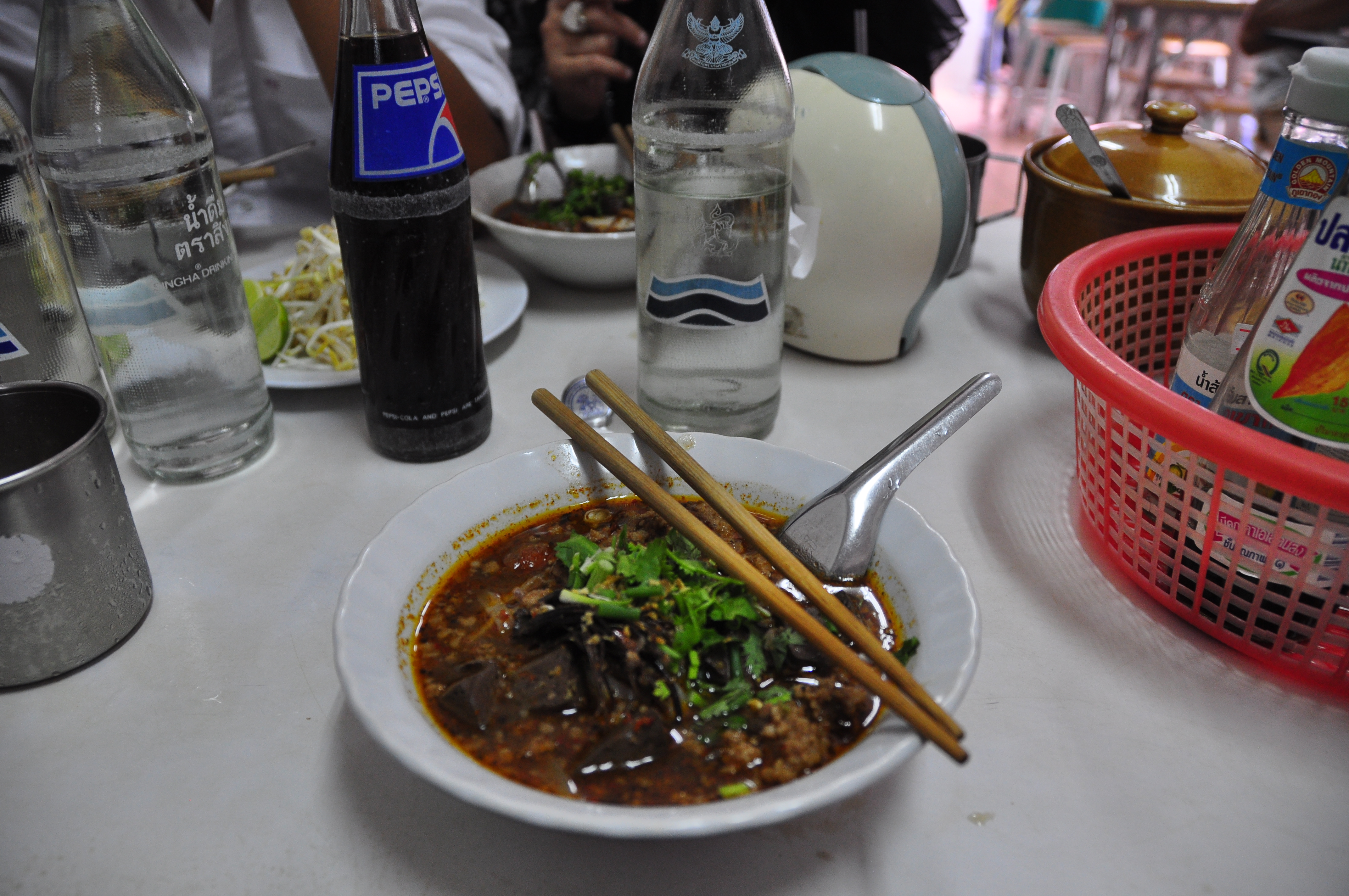 What we did not actively seek out, but what managed to find us, courtesy of a highway-side minimart: an appalling line of new-flavored Pringles chips that will set your hair on end. Tasting like a mix between bubble gum and room deodorizer, these chips (which are, no doubt, only available in Thailand) riff on the Thai fondness for the borderline between salty-sweet: lemon-sesame, blueberry-hazelnut, and most horrifying of all, softshell crab. It was the first, second, and third times, respectively, I was unable to finish a single potato chip.
