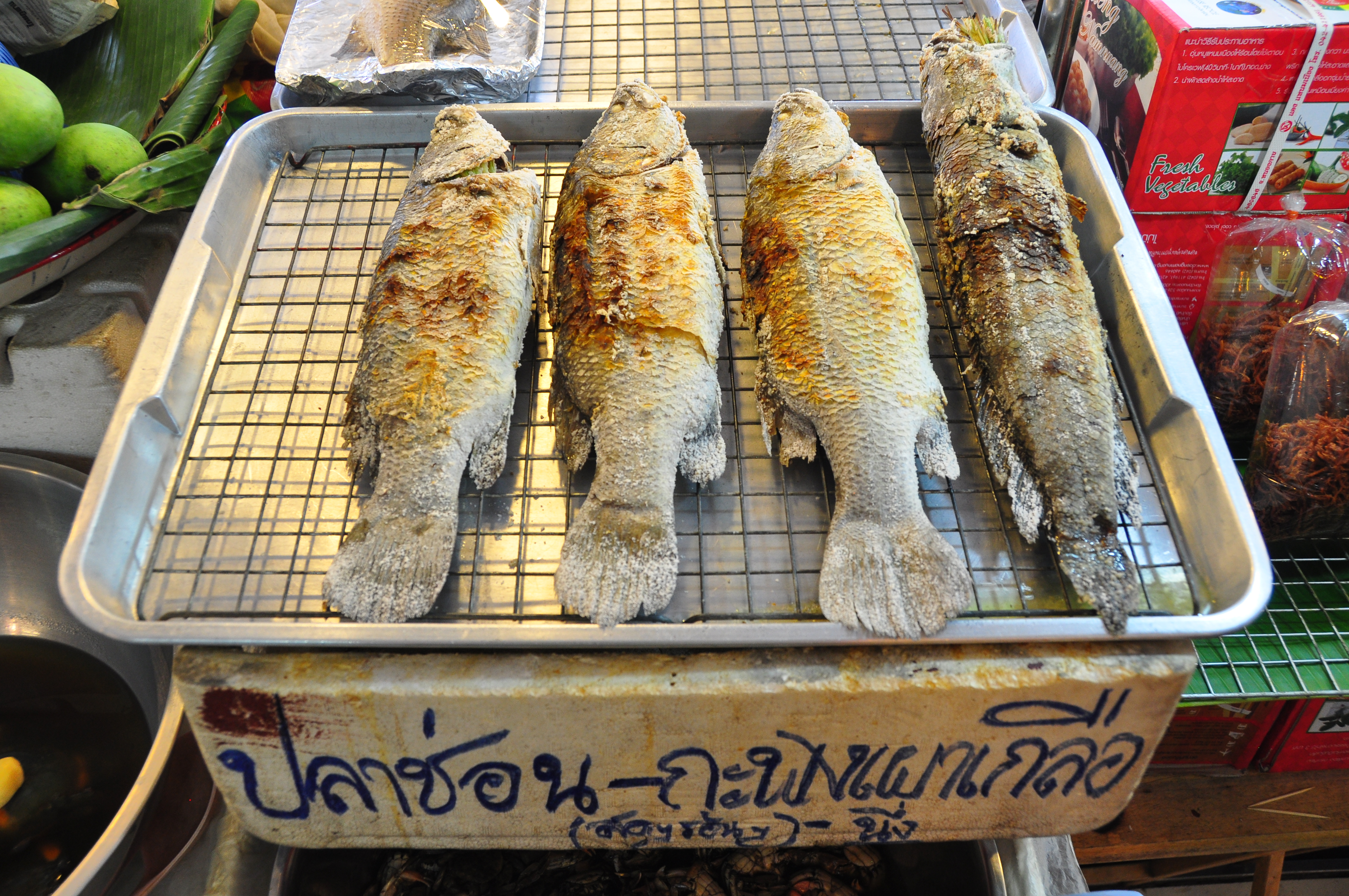 Grilled river fish, a perfect accompaniment to shrimp paste dip