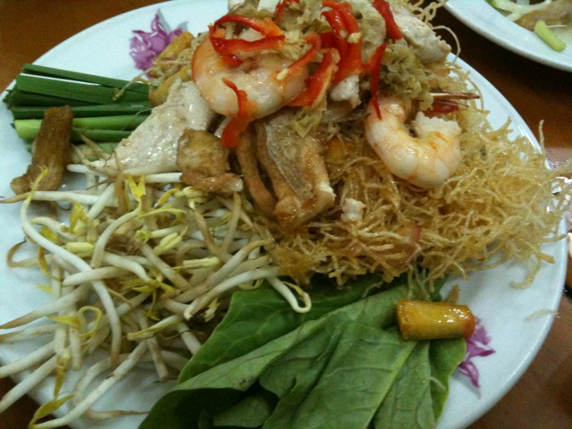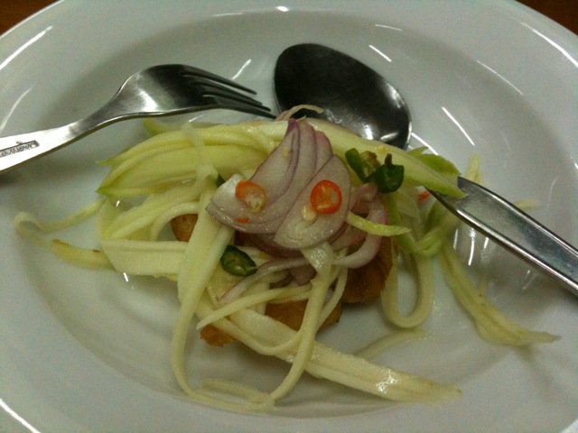 And yes, I know extreme sweetness is a necessary feature of the somehow-this-became-what-they-are-known-for mee krob (yeah yeah, flavored with a rare citrus fruit blah blah blah, I have tons of respect for Bob too). It’s my belief mee krob should be balanced by a spicy curry because each cancels the other out — it doesn’t work any other way. To eat it without thinking about this is sort of an example of what I mean when I say Thai food — as a whole — is getting too sweet in this city. It’s becoming an (admittedly superior) version of the sweetened Thai you find abroad. I blame the gradually Westernized palate in Bangkok (although mine is as Westernized as they come and … oh, never mind. Meatloaf, anyone?)