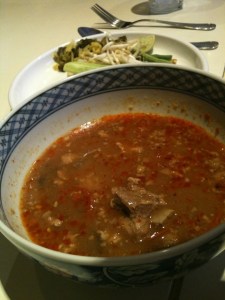 In general, I find the Bangkok restaurants more successful with khao soy than the food stalls — since food stalls specialize in one or two things at most, you’d think it would be the other way around! I’ve tried it at SFM, and think it’s quite good.