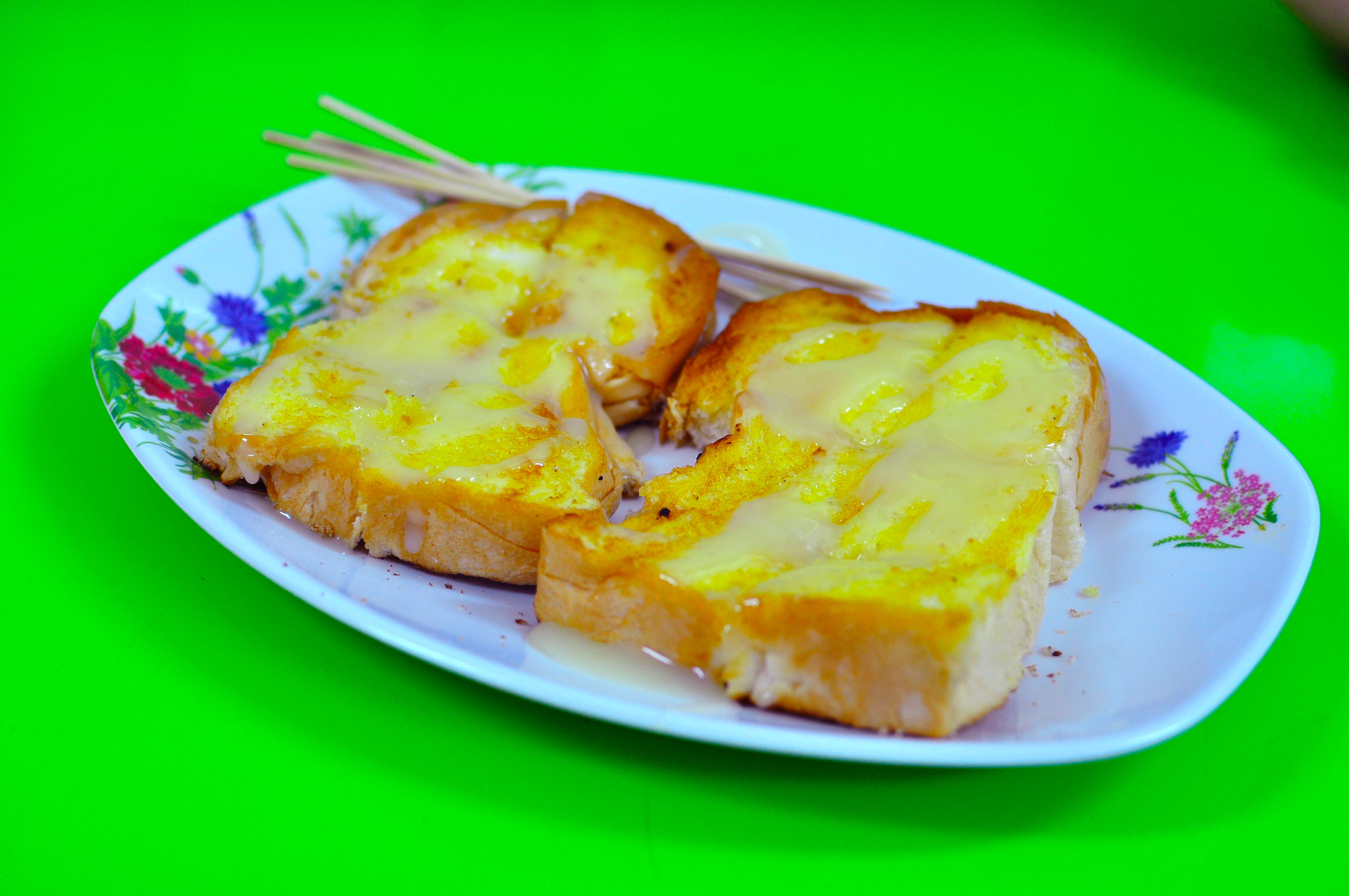Toast is a wonderful treat and it’s nice to find it available even if cultures that are more oriented towards rice as the primary carb. It would be nice, though, if some of the toast vendors had bread that was slightly more… substantive. Wonder Bread / Texas Toast is sometimes a bit underwhelming, even when gussied up with pandan leaf dip.