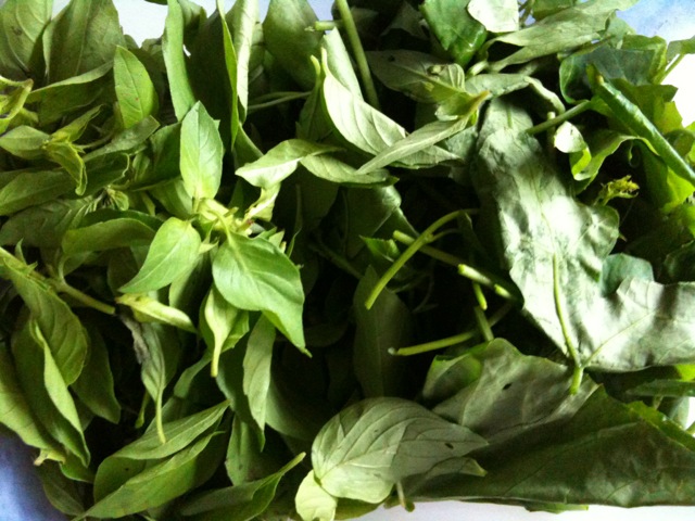 -handful of lemon basil and ivy gourd leaves