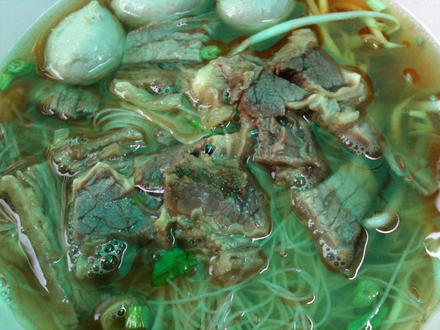 So the beef noodles on Sukhumvit Soi 16, across from the Korean restaurant, are also a wonderful refuge for the socially impaired. Beloved by office workers and motorcycle taxi drivers alike, it is the “we are the world” food stall of that particular road, where people can set aside their various color allegiances or complete and total political apathy (I’m lookin at me, Bangkok Glutton) and jostle each other for bowls of delicious beef water instead.