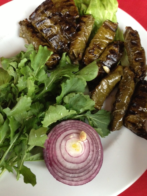 There are so many things to choose from that, to avoid menu fright, we just order everything. We get seabass pickled in 14 types of herbs, based on an 18th century court recipe; mackerel in walnuts and lemon juice (19th-century Ottoman palace recipe); sweet onions, blackcurrants and pine nuts in a paste of chickpea and potato (Armenian); and smashed cucumbers with cream cheese and pistachio (the Ottoman court again, 17th-century). We get deep-fried lamb’s brains and veal spleen stuffed with currants, rice and pine nuts (old Armenian, and so fiddly to make that the dish is practically extinct). And then there are the sardines, wrapped in vine leaves and grilled, enlivened with a squeeze of lemon, a handful of fresh arugula and a thick slab of red onion.