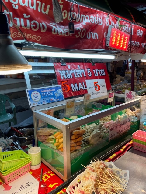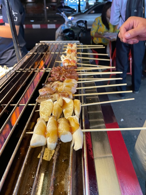 For someone who is *trying* to get through the short month of February with as much of a plant-based diet as is Glutton-ly possible, these mala stalls are a godsend. You can pick what you want — mushrooms, tofu, what have you — and even modulate the level of spice (original spicy, which boasts tongue-numbing Sichuan peppercorns), medium (really a little spicy), or not at all (sweet soy sauce). You can watch what you choose as it cooks in front of you. And it’s a mere 5 baht per skewer. It’s a clean eating meal (for the most part) that also costs a handful of coins. You don’t need to be a blood-sucking corporate cog to recognize this for the deal that it is.