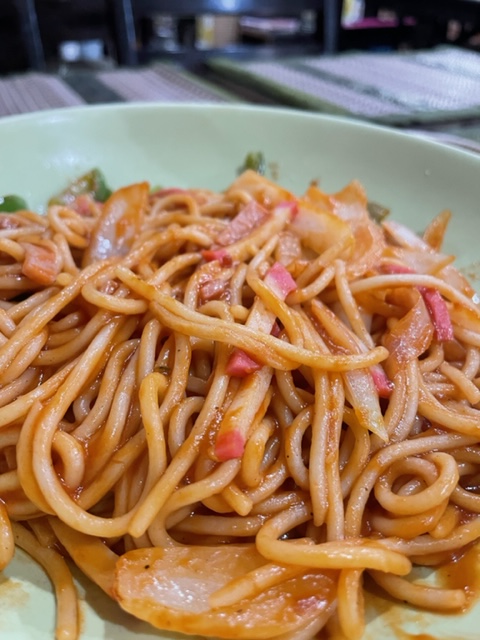 But none is as dear to my heart as “Izakaya Bottakuri”, where a pair of sisters take over their deceased parents’ restaurant. You not only learn a lot about how the dishes are made, but also about what drinks pair best with them. Through this show, I have learned that carrot tops can be stir-fried and seasoned with sesame oil and seeds; that the broth from stewing chicken wings can be made into a jelly and served as a drinking snack; that tororo (mountain yam) can be grated and cooked on top of a hot plate as a “steak”, topped with dancing bonito flakes. But the most eye-opening dish for me, personally, was the “spaghetti naporitan” (S1, E8), a Japanese-Western fusion (yoshoku) featuring pasta, hot dogs, bell peppers, and a sauce made primarily of ketchup.