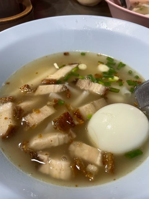 What set Nai Oun’s bowls apart from the rest is the broth, which is clear, yes, but also peppery and full of pork flavor, yet still also clean-tasting. There really isn’t anything else like it on that street, and that is saying a lot. Even after Nai Oun passed away from Covid, and his son Adulwitch took over, the bowls remained the same. If anything, the crowds have gotten larger and more insistent. My last visit there, I was seated so far back I was reminded of the time I visited Oun Pochana’s bathroom (don’t ever do this). Oun Pochana’s popularity has only grown over the years, turning this vendor into one of the road’s few real must-trys, even among native Bangkokians. A bowl of hand-rolled noodles with pork did that, a sign of real craftsmanship with staying power.