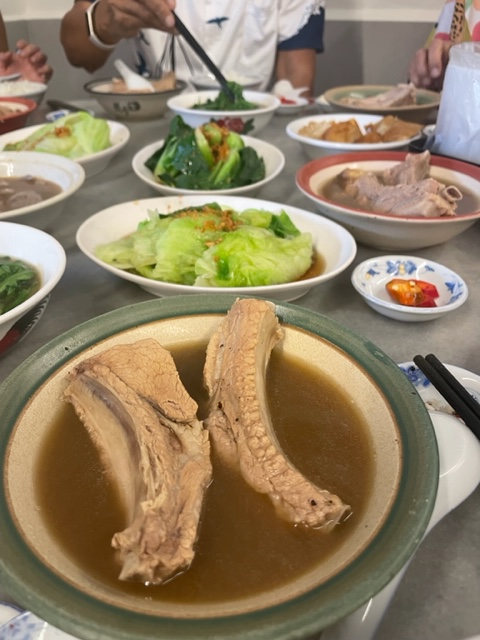I can say this because my husband, once again, was miffed after a server bearing a tray laden with soups shouted at him to get out of the way. This was at Ng Ah Sio Bak Kuh Teh, a longtime favorite of the family and much looked-forward-to by a person who professes bak kuh teh, pork ribs stewed in a peppery broth with rice, one of his favorite dishes in the world. Our server was nicer after, with typical Chinese straightforwardness, he noted, “Oh, you ordered a lot.”And we did: there was also three kinds of tofu, and pickled cabbage, beef liver, boiled peanuts, deep-fried crullers, and a smattering of greens. “It’s very light,” he reassured us, noting my stricken face on seeing the crowded tabletop.