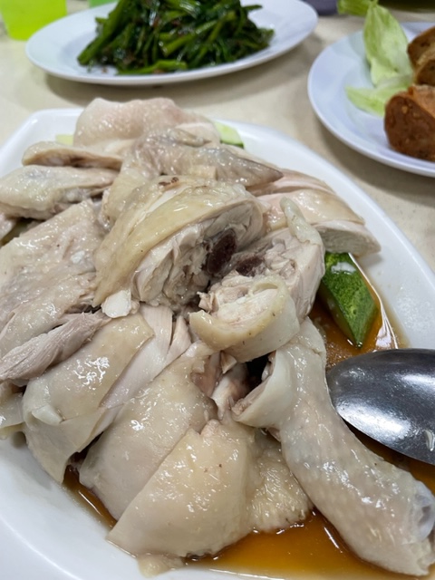 That evening, when everyone else was celebrating the end of yet another leg of the cruise at a beautiful venue with too little food, my husband and I met our friends Khim and Galen at Chin Chin Eating House, famous for its Hainanese chicken rice, which is one of Singapore’s national dishes (even though it’s from Hainan?) We got there at 7pm during a torrential downpour, and no chickens were hanging in the window, prompting a mini-panic attack from my husband. “Quick, reserve one!” he said, prodding at my arm, but I was adamant that we would be fine, since the flood of people seated after us would have seriously revolted if left without chicken on their tables.
