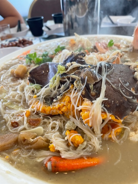 But crab bee hoon (crab with rice vermicelli in a gravy) isn’t the only thing you should order here. There’s also black pepper crab, thick enough to stay under your finger nails, and crab swimming in a lake of tomatoey curry, roe-studded crab parts barely visible above the murk. There are razor clams stuffed with glass vermicelli and garlic, and Chinese kale, stems shaved and served in a thin hoisin sauce. And there is chicken fried rice, for your son who eats nothing.