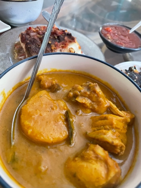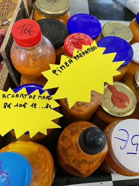 We ended up ordering the ubiquitous “poulet au coco”, less curry-like than its counterpart on the Seychelles, as well as the cote de boeuf, saignant, with the chef’s signature chili-laced mayonnaise sauce. Even better (I’m afraid to say) was the accompanying hot sauce, a specialty of the island and a mainstay at the markets.