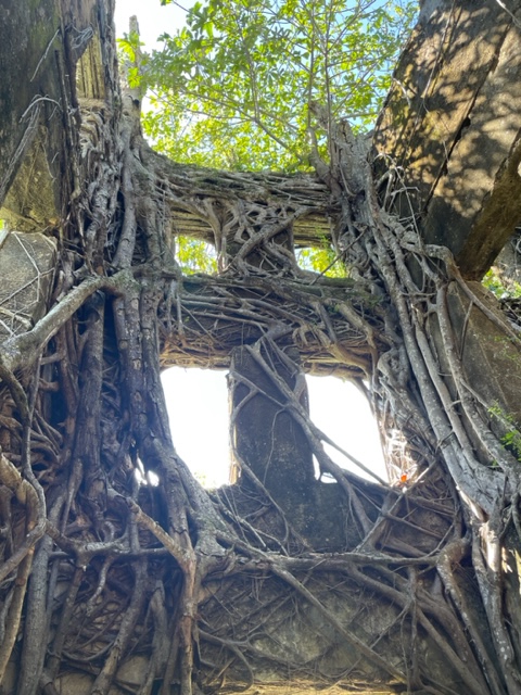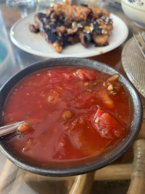 But after 15 minutes, I cannot believe I am still outside walking. After 20, while walking up a hill, I realize that if I were to trip and fall, I would simply lay down and die. Finally, we reach the restaurant, which is actually on the outskirts of town, halfway up a fairly steep incline. At the restaurant, we encounter more people from the ship. “We took a taxi,” they said, glancing at our clothes, which look like we’ve been thrown into a swimming pool. The staff kindly direct us to the coolest spot in the open-air dining room. Behind us, next to the restrooms, a crowd of tortoises is having their own lunch, a mass of carrots, eggplants, cabbage and tree leaves.
