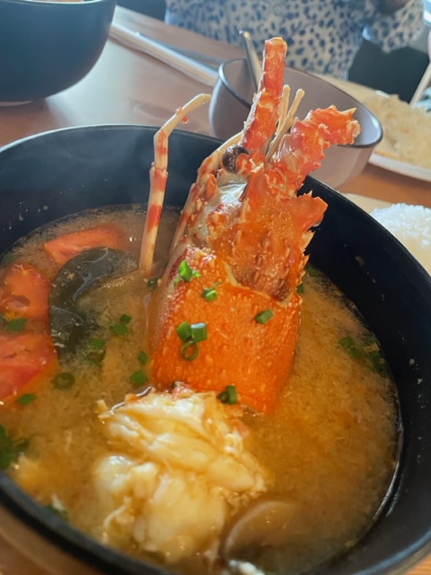 Another large bowl, enough to feed a family of 6 in Thailand, brought us a lobster “khao soi” crowned with an improbably big lobster head, its meat shredded in a khao soi broth and accompanied by pickled mustard greens and fresh lime wedges in a nod to the dish’s origins.