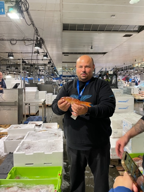 I stayed up late after returning from Gramona, mainlining coffee and watching “Below Deck” on the couch in order to stay awake. It was imperative for me to make it to the seafood market, if only for the bragging rights of being able to say I went to a market that would be closed off to me under normal circumstances. I imagined that once we got there, we would simply browse through the merchandise as Jordi explained to us the different types of seafood from around Spain. I did not expect to have one of the greatest meals of my life.