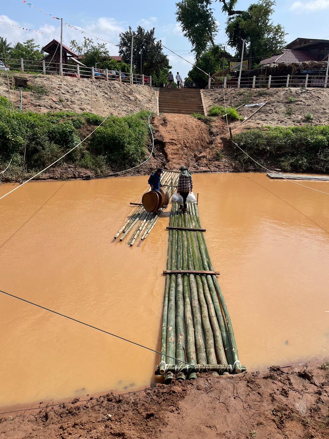 Luckily for us (they said), there was a bamboo “raft” that people were using to cross the river at another juncture. Little did we know that they really did mean a “raft” (or should I say “two rafts, requiring the dexterity of a teenaged gymnast”?)