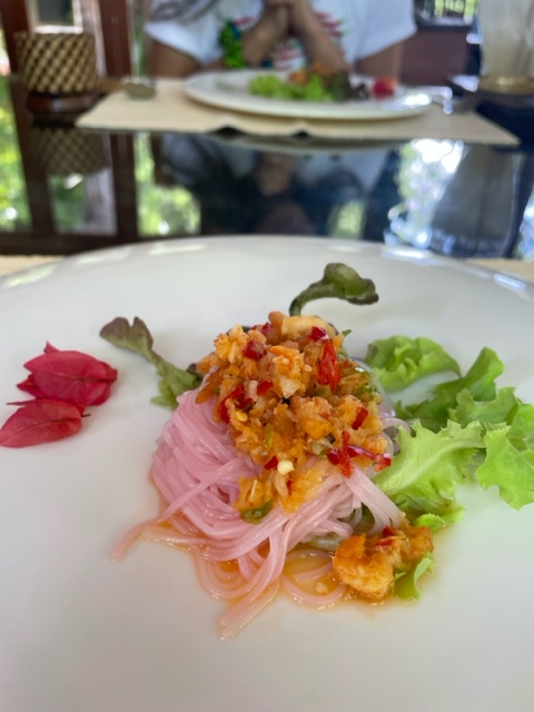 In Khon Kaen, the menu is more eager to lean into Isaan influences and local ingredients, as illustrated by the restaurant’s fairly luxury-sized tasting menu (9-10 courses, though honestly, I think we might have pleaded for less food at the end, as our digestive systems aren’t what they used to be *insert grandma emoji here*). Everyone had their particular favorites, and mine was the fermented Mon-style rice noodle (kanom jeen) topped with a relish of tiny local river prawns and colored with local dragonfruit rinds (brilliant considering all of the dragonfruit farms in Isaan there are).