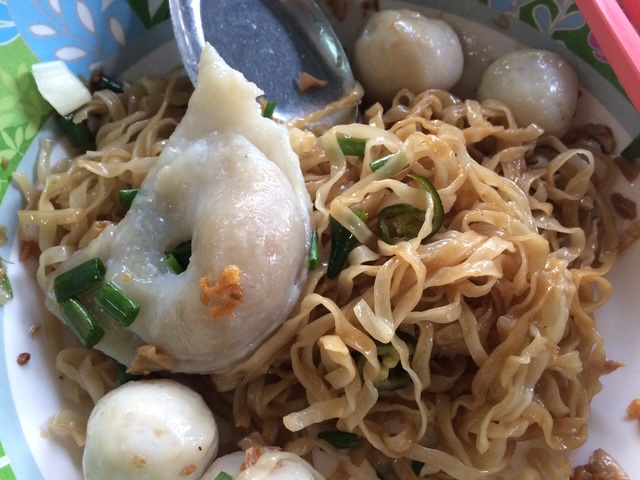 But the “right shop” noodles come already seasoned. I added some pickled chilies because I am stubborn and need to do something, but it wasn’t really needed. The noodles are already salty and a bit sweet. The reason for this, I imagine, is because so many non-Thais are eating there, and they do not have that ingrained desire to mess around with everything. These noodles are meant for them.