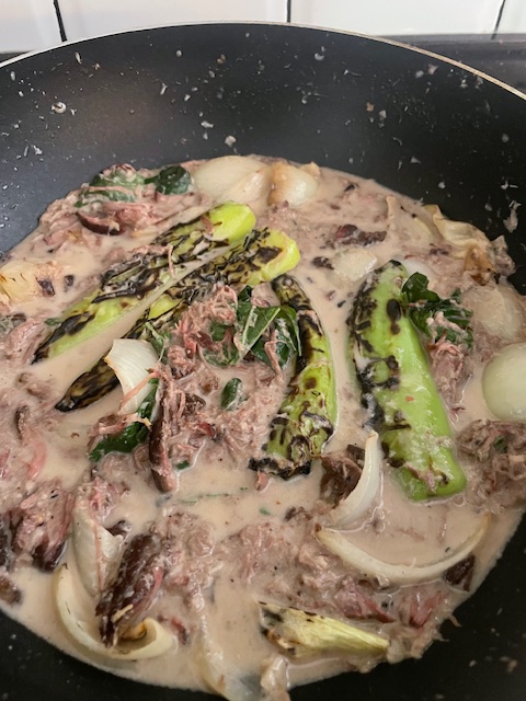 Did I almost cut off the toe from my injured leg by dropping a knife onto the floor? Yes! Did the mixture burn at the bottom because my heat was too strong (“medium low” should actually be “low” in the recipe)? Yes! I ended up adding dried Ancho chilies gifted to me by my friend Jon and their soaking liquid, and the end result was quite nice and smelled amazing. Do I have a picture? No! It’s not like I can run up and down the stairs willy-nilly right now, especially after the previous burning incident. You’ll just have to trust me.