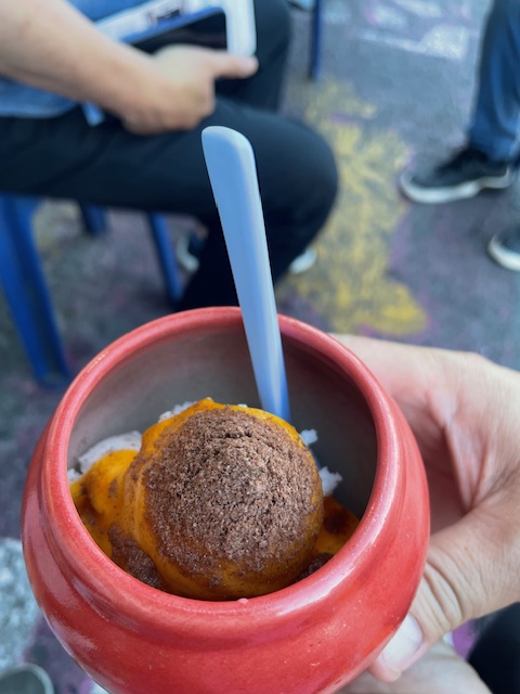 Alas, we didn’t have the time to try these delicacies (I know). What we do have time for is one of Songkhla’s most famous snacks: a quick “sundae” of house-made ice cream topped with egg yolk and a spoonful of Ovaltine powder from I Tim Ong (also famous for its fish meatballs).