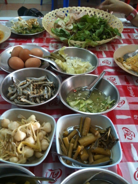 Well, Ubon Ratchathani has its act together when it comes to this. Raan Booniyom (corner of Thepyothi and Srinaruad roads, 086-871-1580) — less a stall, more a cafeteria, to be honest — offers everything that any vegetarian in Thailand would be happy to try out. In business for the past decade or so, Booniyom is possible because of the efforts of a group of local volunteers who arrive daily to dish up stir-fries, curries, salads, noodles, desserts, and anything else you could think of that is vegetarian.
