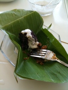 But while Pa Choung is a one-woman curry-making machine, Raan Kafae Jek Pia (intersection of Naebkehardt and Dechanuchit Roads, open 6:30-1:30pm) is clearly Breakfast Central for the entire town. Every table is occupied, and on nearly every tabletop is a mug of sludge-like kafae boran (old-fashioned coffee), flavored with a layer of condensed milk. But this is not the main attraction. Instead, it’s the collection of stalls that service Kafae Jek Pia’s customers: jok moo (Chinese-style rice porridge with minced pork); khao thom pla (rice porridge with fish); guaythiew (noodles in soup); and, most intriguing of all, gow low lued moo (pig’s blood in soup), traditionally served for breakfast here, in a country not really known for its breakfast foods.