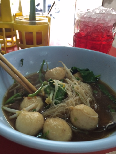 Not to say there’s no little gimmick to set this little stall apart. Here, it’s the unique sauce, set atop every table and served alongside the four-pronged usual condiment selection of sugar, chili flakes, chili-studded white vinegar and fish sauce. It has no name, but it does have ingredients: vinegar, garlic, chilies, palm sugar, and an irresistible hit of fermented tofu, my culinary Achilles heel, a quicksilver sweetness in a pork broth smelling faintly of Chinese 5-spice powder.