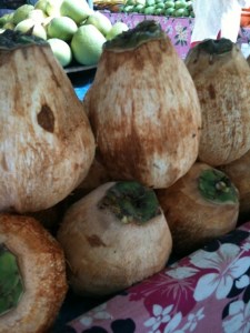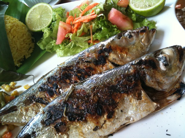 This trip has, in a sense, unmanned me. Where I once commanded legions of dishes, sowing destruction on restaurant tables near and far with my trusty fork and knife, striking fear into the hearts of servers everywhere, I now … I just am not up to it. Jewel-like rounds of poisson cru, diced and mixed with coconut milk, freshly steamed mahi-mahi, paired with slivers of lime, splinters of just-cracked fresh coconut, skin attached — I should be into this. But just as the tropical splendor about us is relatively untouched and left in its natural state, so, apparently, goes the local cuisine — steam, boil, mash, grill. Season with lime and/or coconut juice. Repeat.